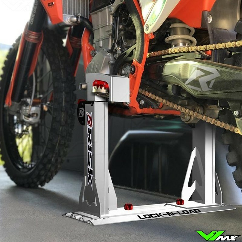 Printr-o simplă apăsare, brațele Lock-N-Load se închid ferm, blocând motocicleta în poziție verticală.